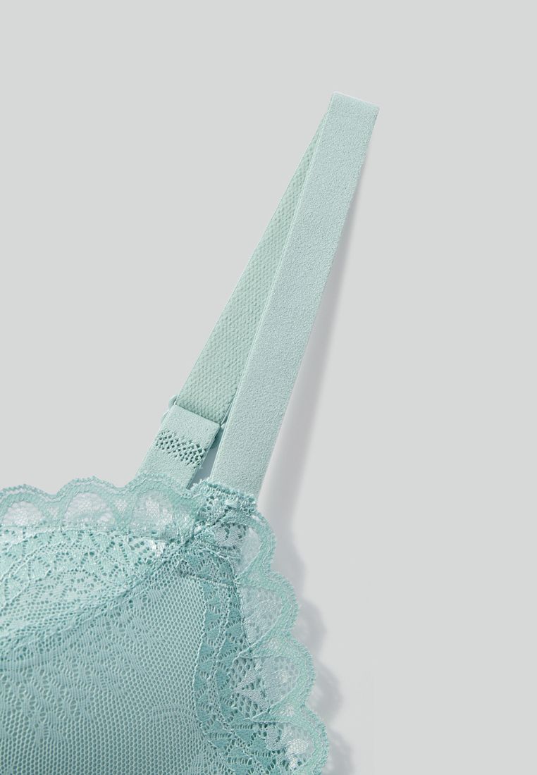 * Thiết kế cúp xéo full ren, áo không gọng nhưng được thiết kế như có gọng nhờ lớp chân áo giữa cao 8cm kết hợp chân mút dạng đúc hình gân lá dày tầm 2cm giúp ôm và nâng đỡ nhẹ nhàng vòng 1. Áo phù hợp cho các nàng có V1 khiêm tốn hoặc vừa,