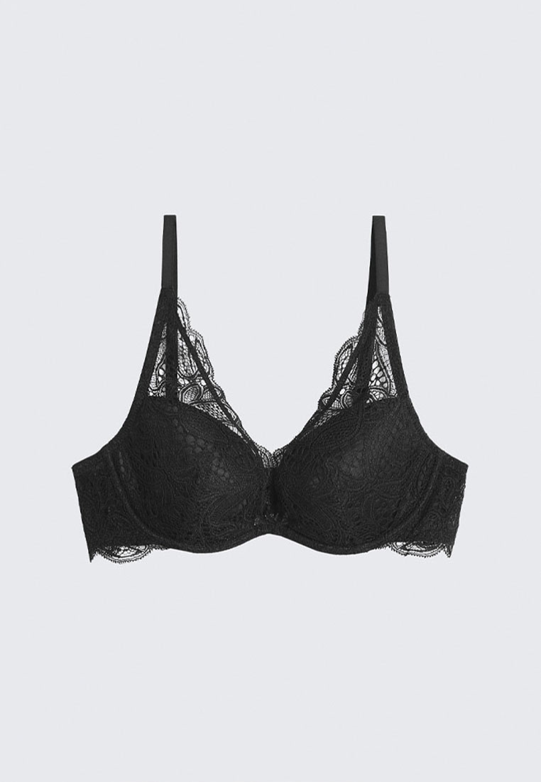 * Cúp áo xéo được tô điểm nhấn bằng lớp ren mỏng tạo sự gợi cảm cũng như che khuyết điểm cho những nàng vòng 1 “khiêm tốn”.