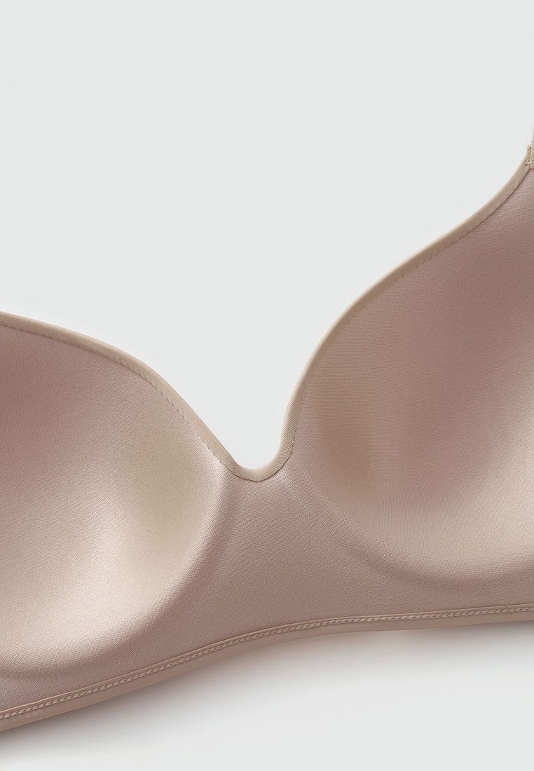 * Thiết kế cúp xéo trơn toàn bộ áo, áo không gọng nhưng được thiết kế như có gọng nhờ lớp chân áo cao 6.5cm kết hợp cùng có độ dày của chân mút gần 1cm giúp làm đứng form áo.